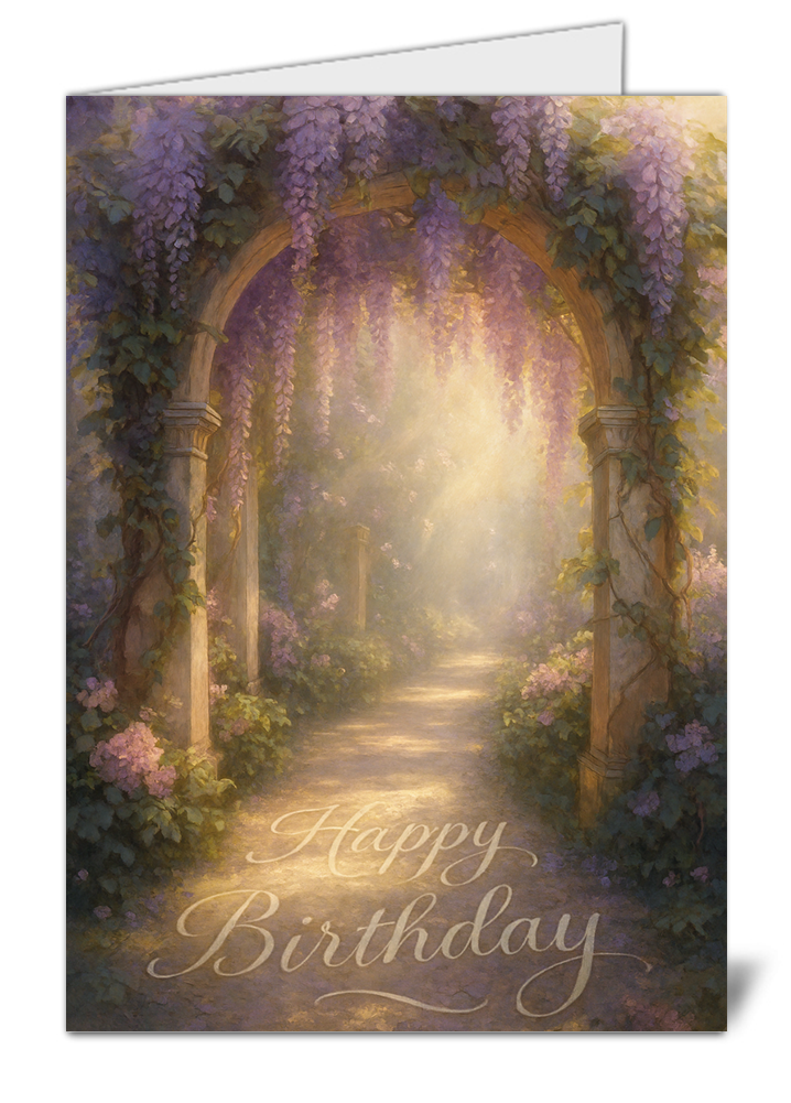 Floral Archway Themed Happy Birthday Card – High Quality Gloss Birthday Card