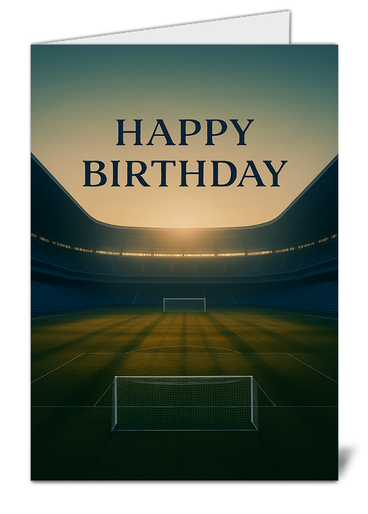 Celebrate birthdays with the football stadium birthday card that brings the energy of the pitch to life. Its premium gloss finish ensures vibrant colours and sharp detail for maximum impact. Designed for football fans, it makes any celebration feel special. The sturdy card stock guarantees a professional look and lasting impression. A dynamic design that captures the excitement of the stadium for every fan.