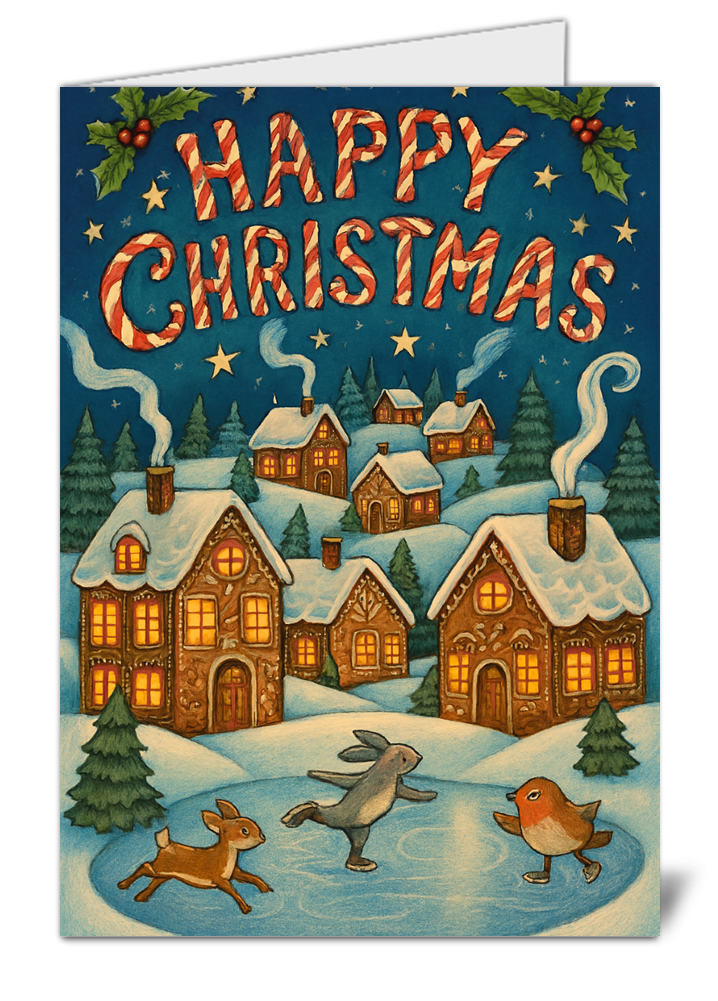 Village Themed Happy Christmas Card – High Quality Gloss Festive Christmas Card