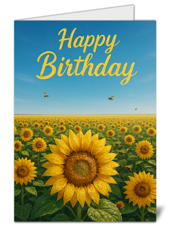 Sunflower Field in Radiant Morning Light Themed Happy Birthday Card – High Quality Gloss Birthday Card