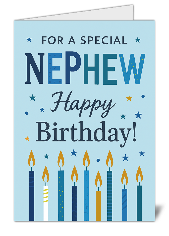 Make his birthday feel extra special with this happy birthday special nephew card, designed for families who want a thoughtful and cheerful card for a much-loved nephew. Featuring a blue stars and lit candles design, this card is a lovely choice for showing love and appreciation on his birthday with something more personal than a standard greeting card.
