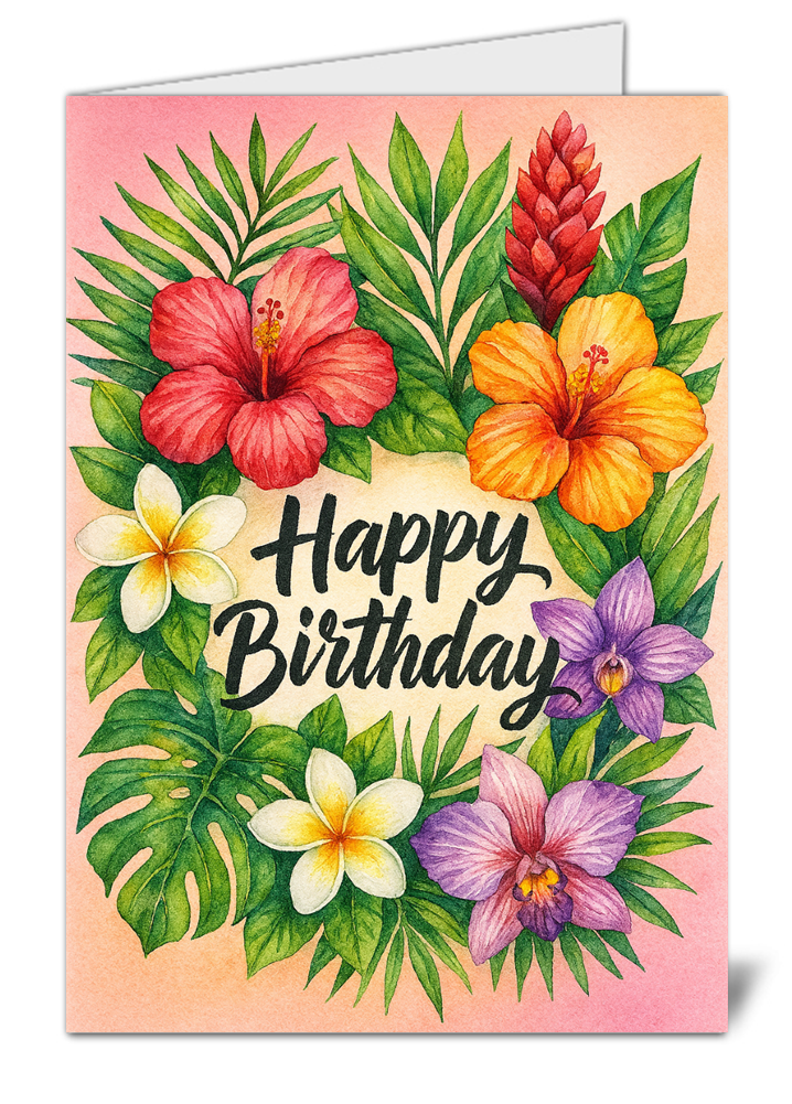 Be the first to review “Tropical Hibiscus Plumeria Birthday Card – Orchid Ginger Floral Design”