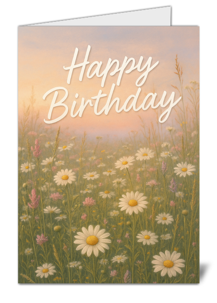 Make their birthday feel extra special with this white daisy wildflower birthday card, designed for anyone who appreciates delicate floral artwork and soft countryside-inspired designs. Featuring white daisy detail with a meadow field and pastel sky look, this card is a lovely choice for mums, nans, sisters, friends, partners, or anyone who would enjoy a graceful and uplifting birthday card.